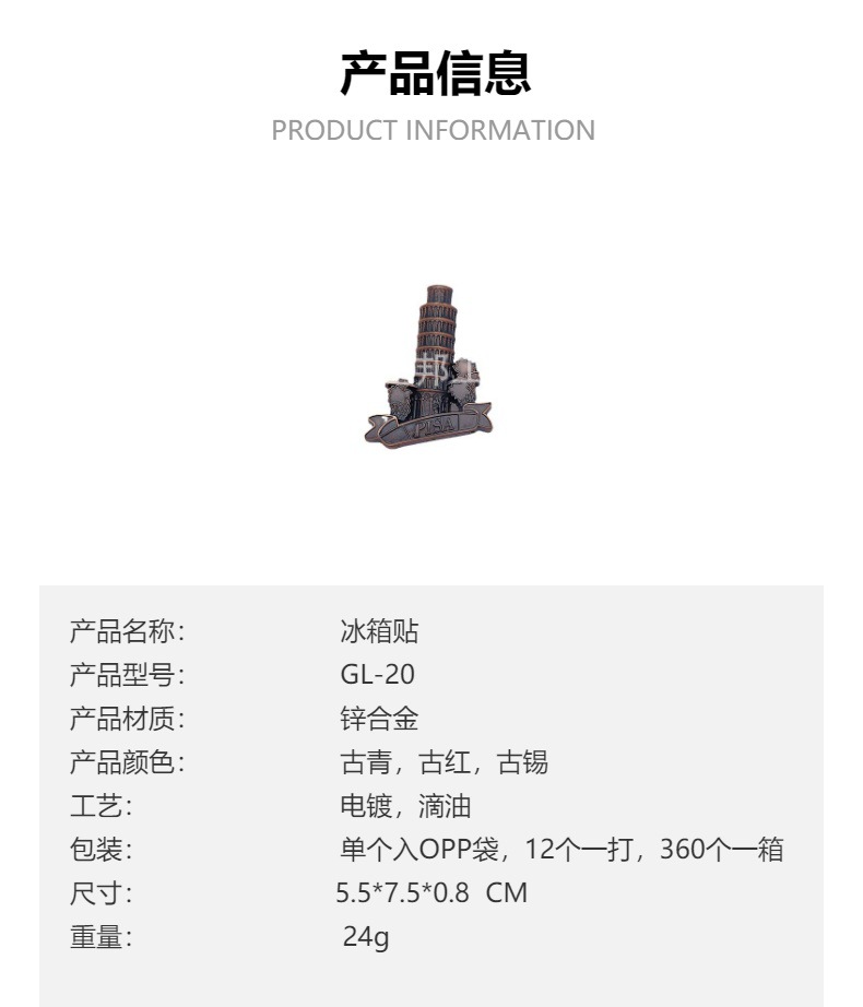 金属旅游纪念品意大利比萨斜塔PISA罗马斗兽场万神庙锌合金冰箱贴 投诉