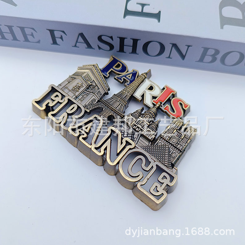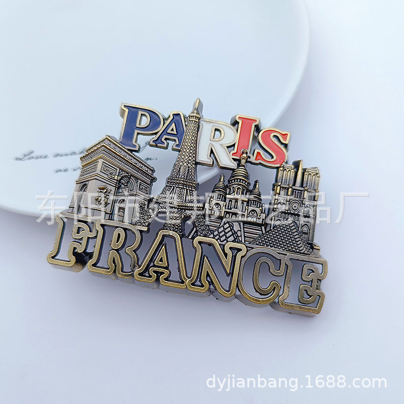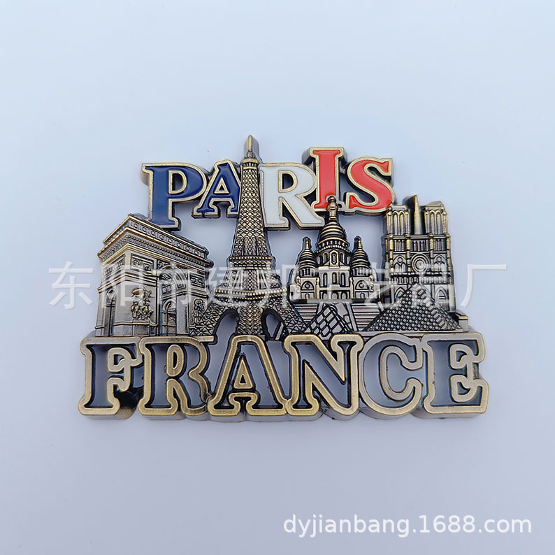 金属旅游纪念品法国巴黎埃菲尔铁塔凯旋门白教堂复古锌合金冰箱贴