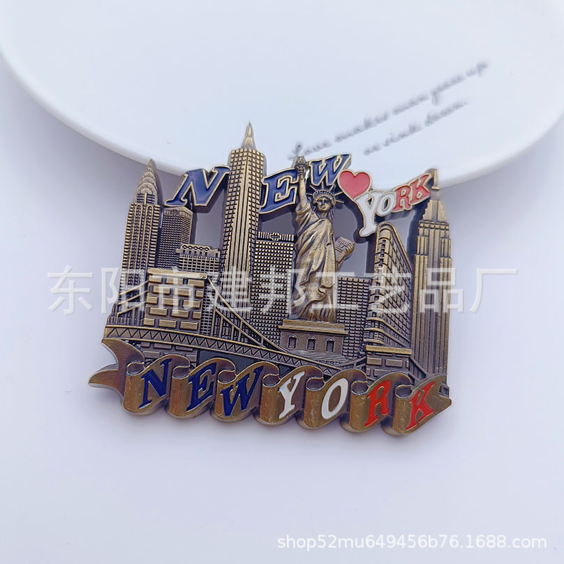 北美州旅游纪念品美国洛杉矶纽约中央公园自由女神像锌合金冰箱贴