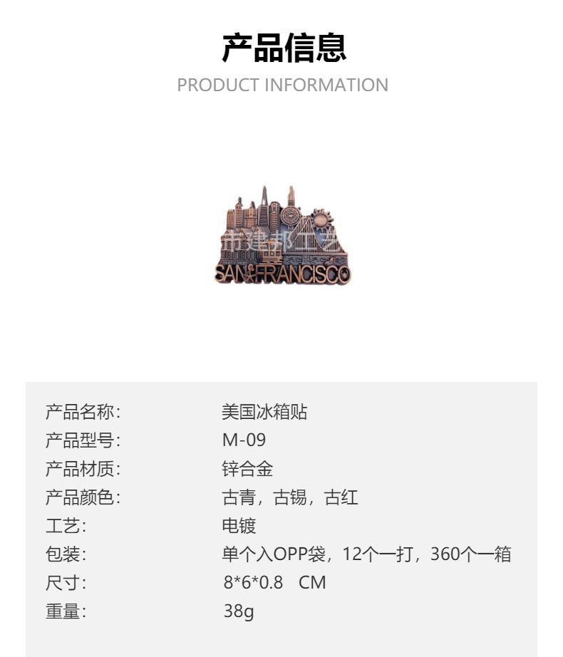 美国纽约旧金山法国英国西班牙捷克奥地利旅游纪念品锌合金冰箱贴 投诉