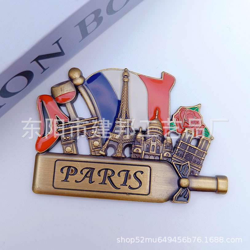 法国德国英国美国捷克旅游纪念品巴黎铁塔凯旋门金属锌合金冰箱贴