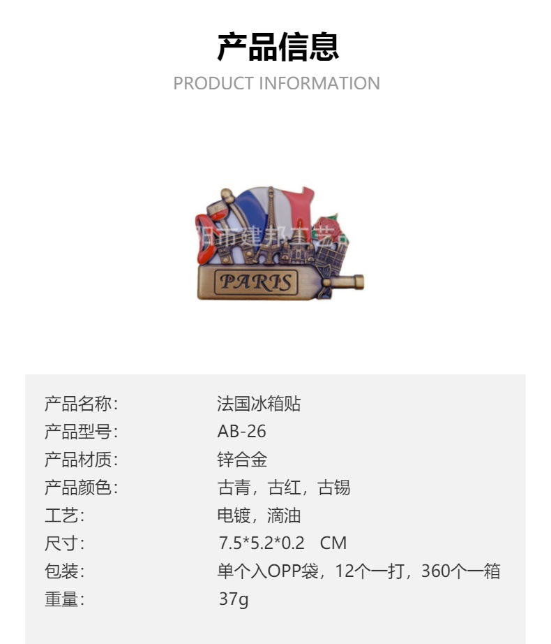 法国德国英国美国捷克旅游纪念品巴黎铁塔凯旋门金属锌合金冰箱贴 投诉