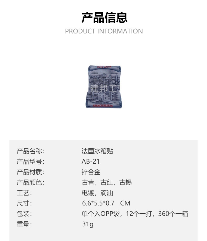 法国德国英国蔚蓝海岸旅游纪念品巴黎铁塔凯旋门金属锌合金冰箱贴 投诉