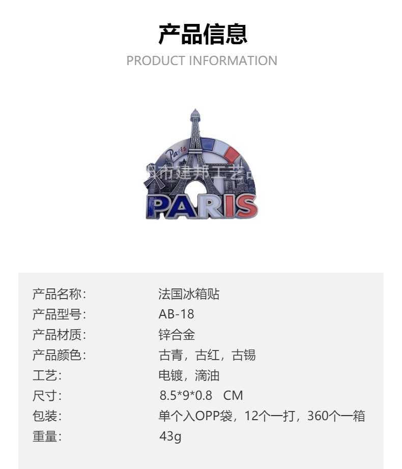 法国迪拜英国美国捷克欧洲旅游纪念品巴黎铁塔凯旋门锌合金冰箱贴 投诉