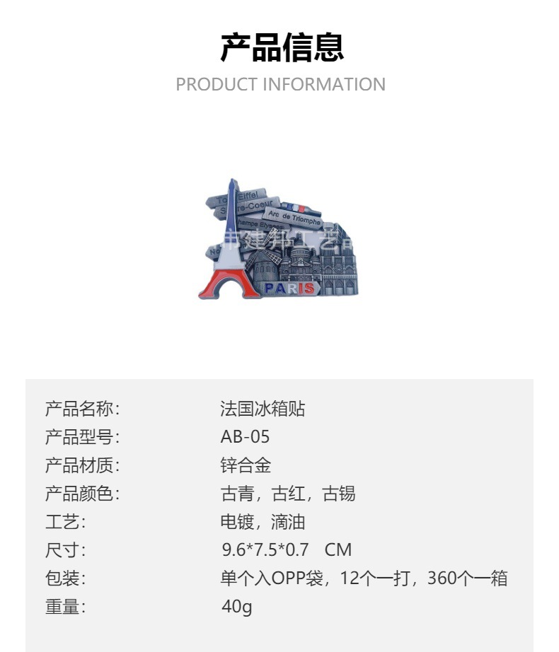 法国德国捷克迪拜西班牙旅游纪念品巴黎铁塔凯旋门锌合金冰箱贴 投诉