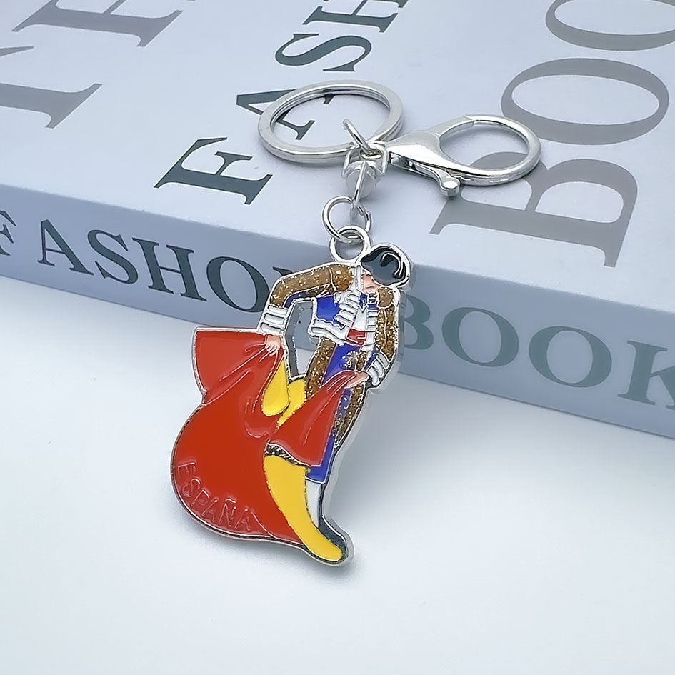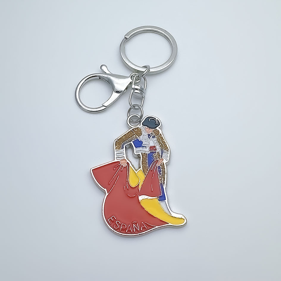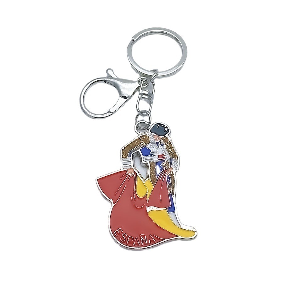 西班牙旅游纪念品金属钥匙扣 烤漆画油工艺锌合金钥匙扣定制LOGO