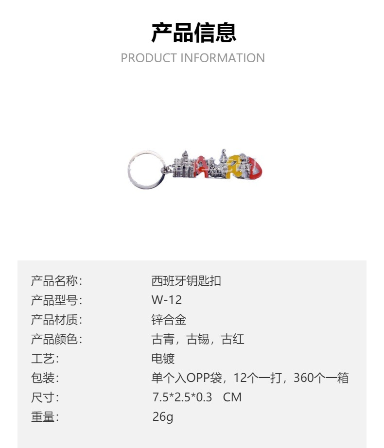 金属西班牙澳大利亚英国德国捷克美国迪拜旅游工艺品锌合金钥匙扣