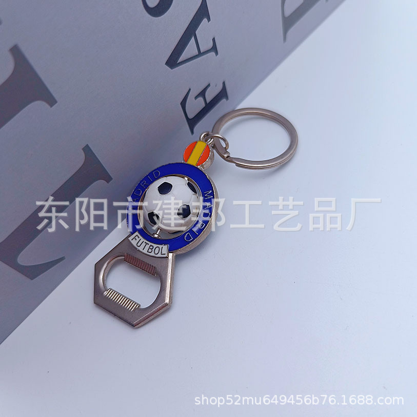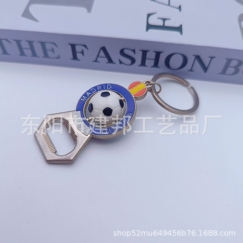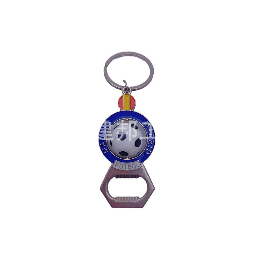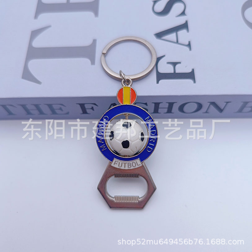 厂家定制西班牙马德里立体足球可旋转钥匙扣亚克力锌合金开瓶器