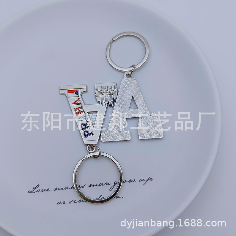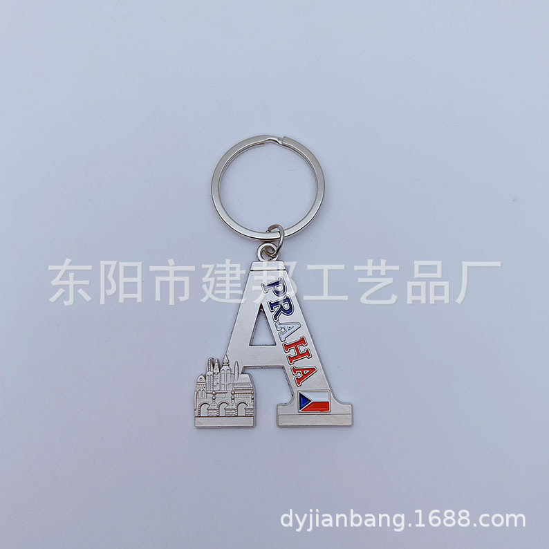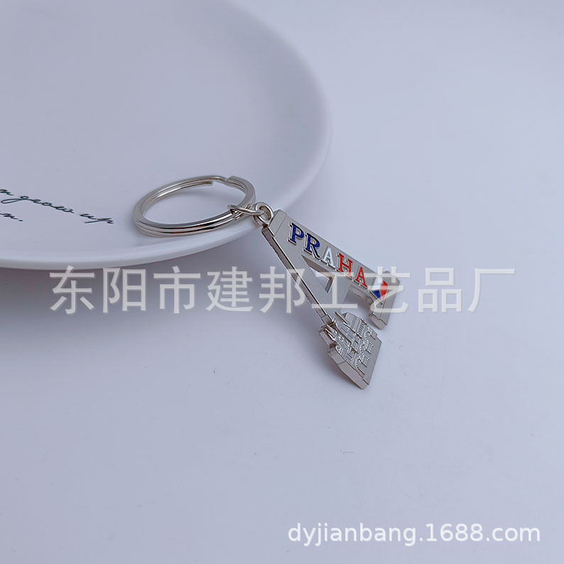 厂家定制字母金属旅游纪念品捷克旧皇宫圣维塔大教堂锌合金钥匙扣