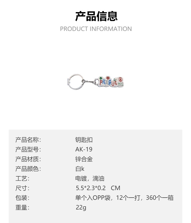材质: 合金 货号: AK-19 是否进口: 否 合金种类: 锌合金 工艺: 电镀 加工定制: 是 品牌: 建邦 产品编号: AK-19 类别: 钥匙扣 摆挂形式: 挂饰 重量: 0.5 kg/个