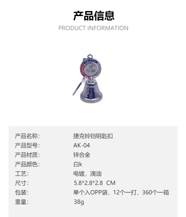 金属开饭铃旅游纪念品捷克PRAGUE圣维塔大教堂锌合金铃铛钥匙扣 投诉