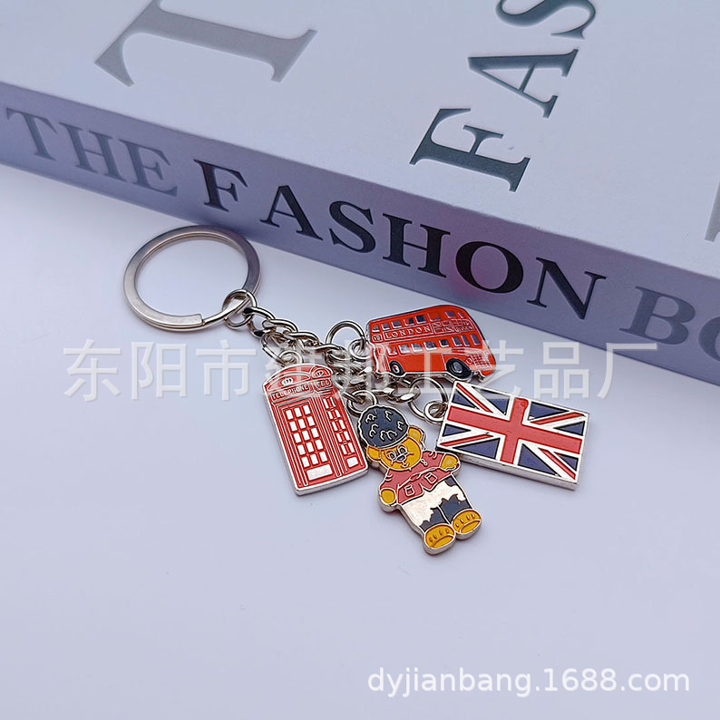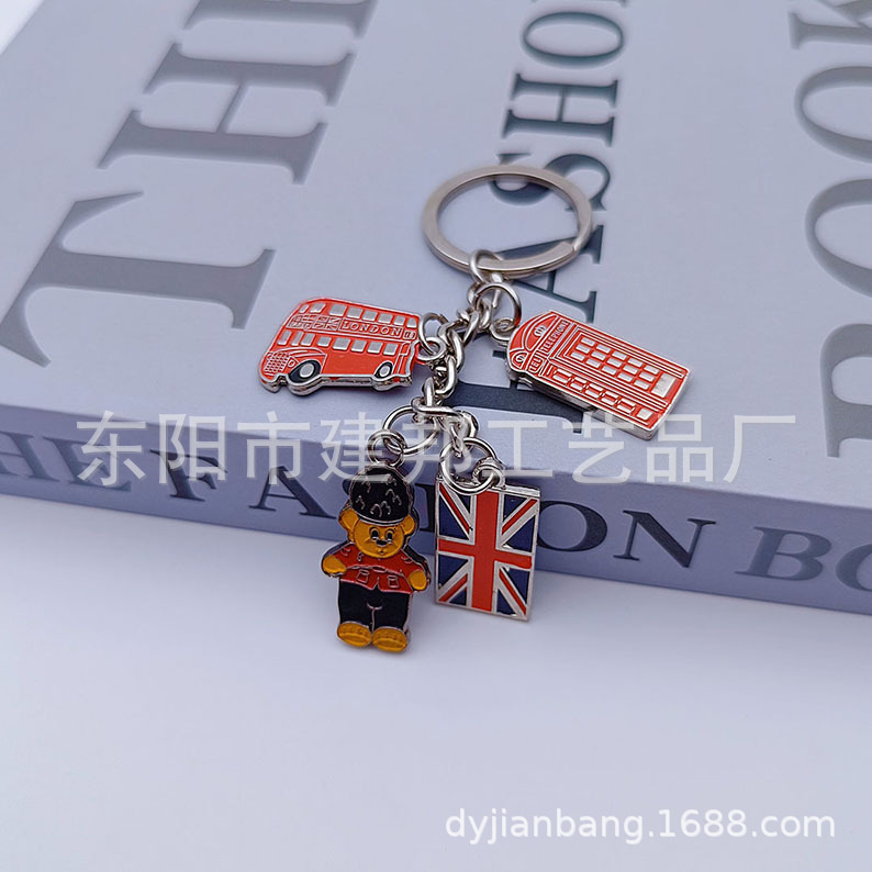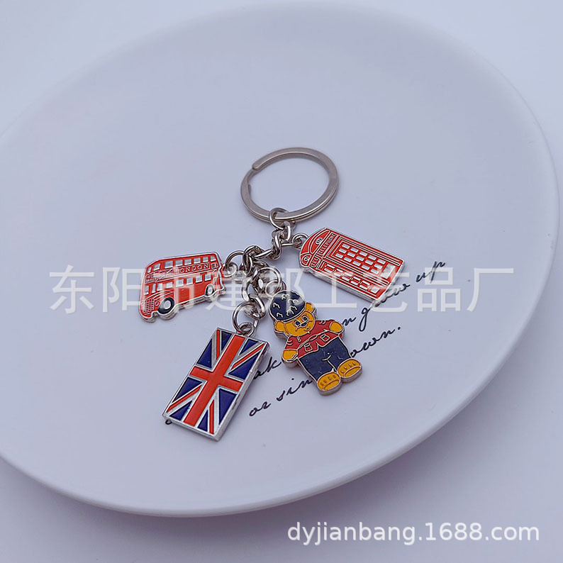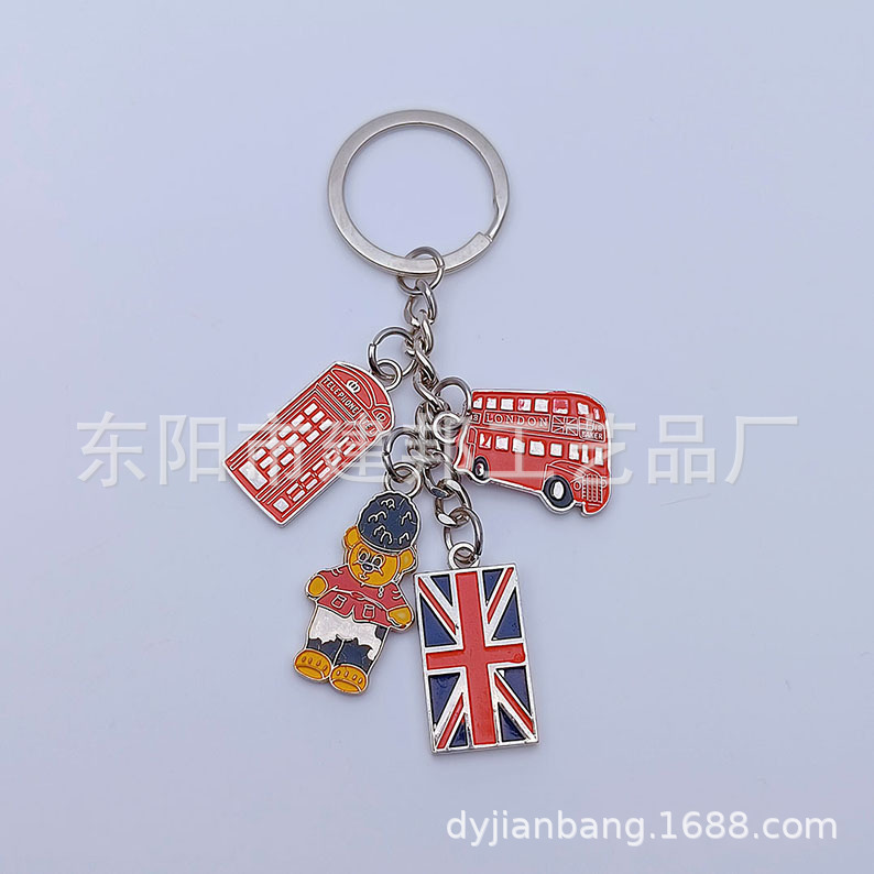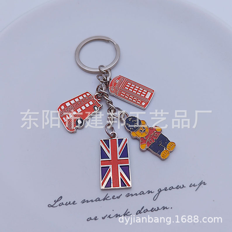 欧洲旅游纪念品英国国旗伦敦大本钟双面滴油锌合金百搭挂件钥匙扣