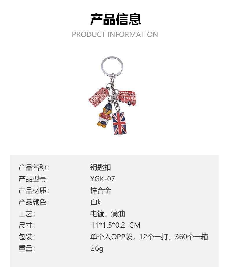欧洲旅游纪念品英国国旗伦敦大本钟双面滴油锌合金百搭挂件钥匙扣 投诉