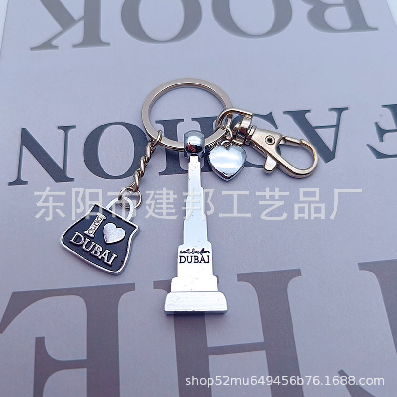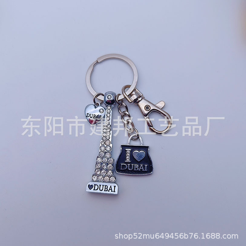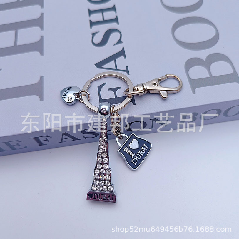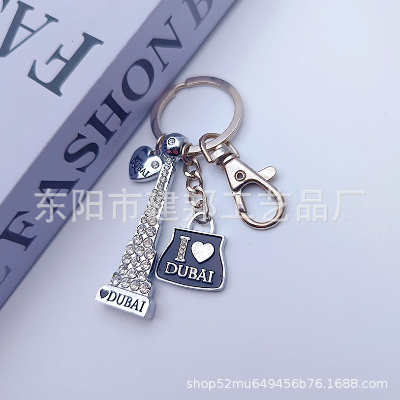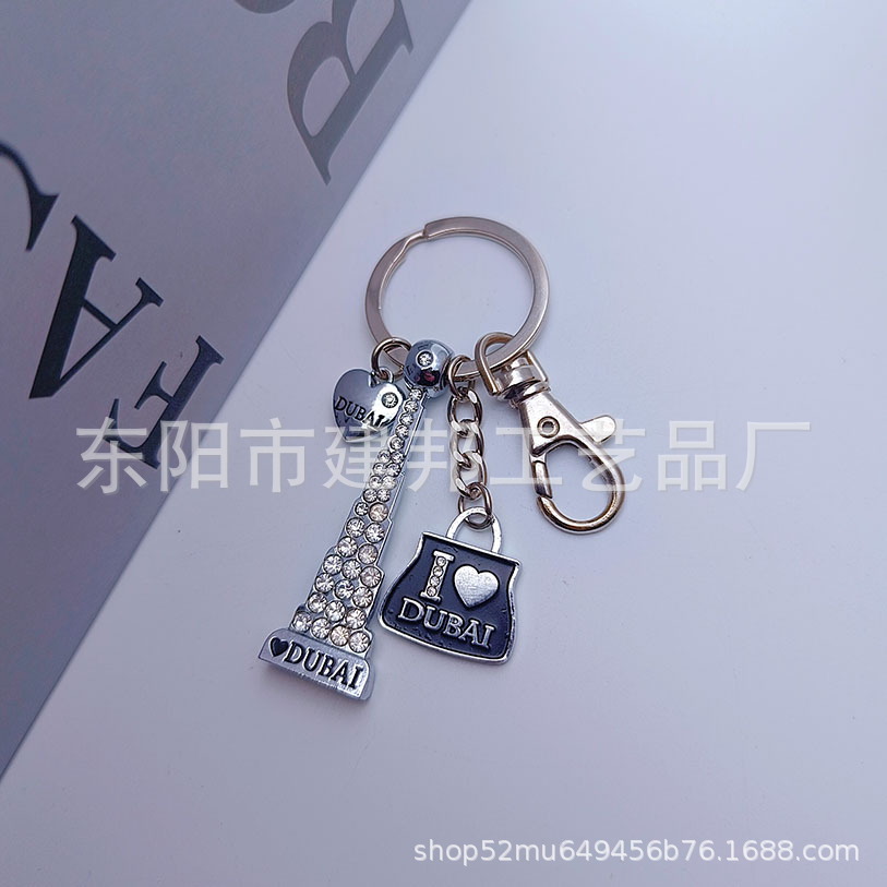 迪拜旅游纪念品迪拜哈利法塔帆船酒店迪拜码头带钻锌合金钥匙扣