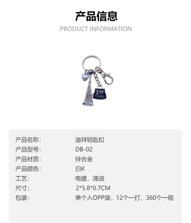 迪拜旅游纪念品迪拜哈利法塔帆船酒店迪拜码头带钻锌合金钥匙扣 投诉