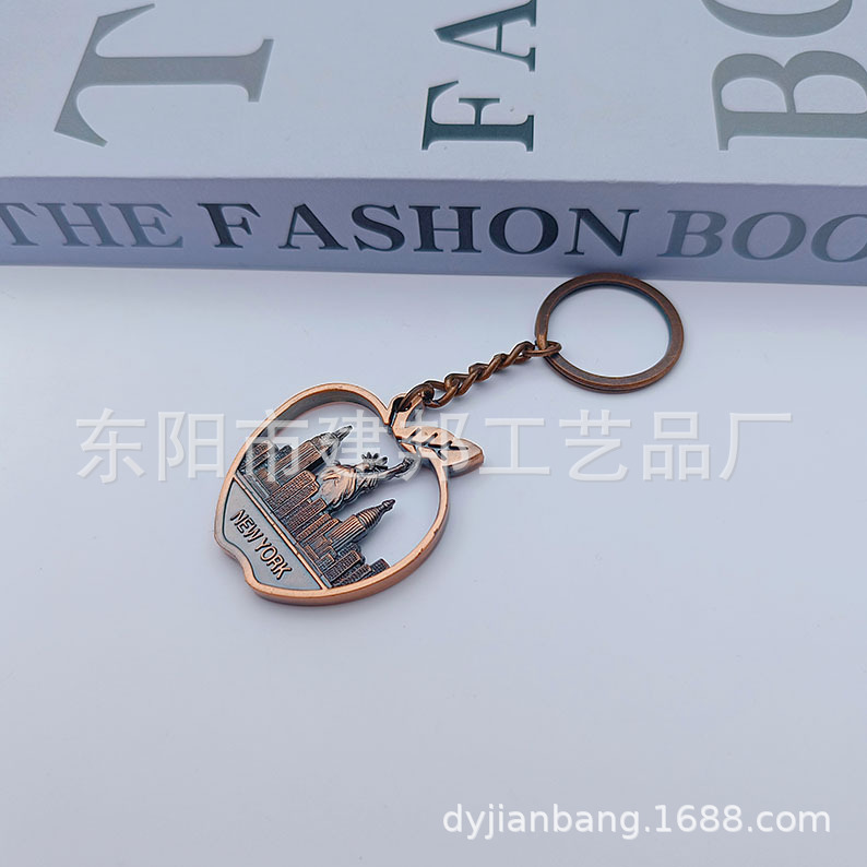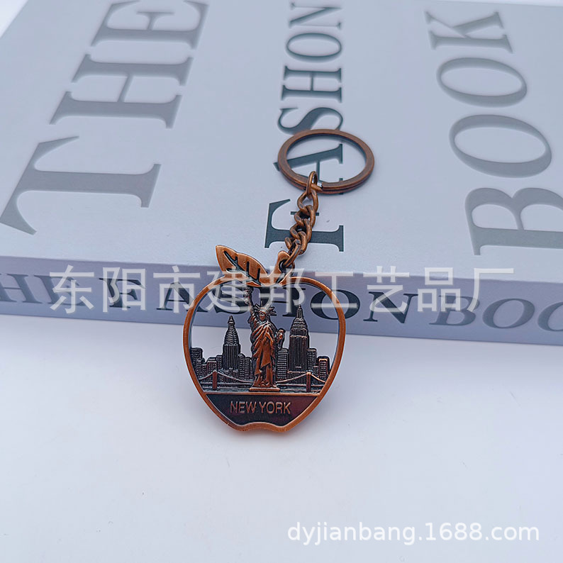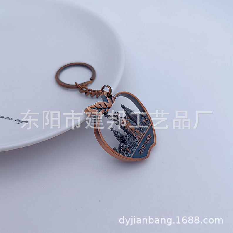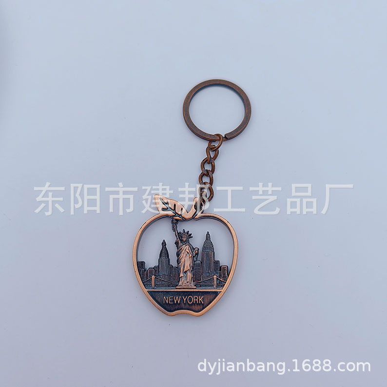 厂家定制个性金属旅游纪念品美国纽约new york 苹果锌合金钥匙扣