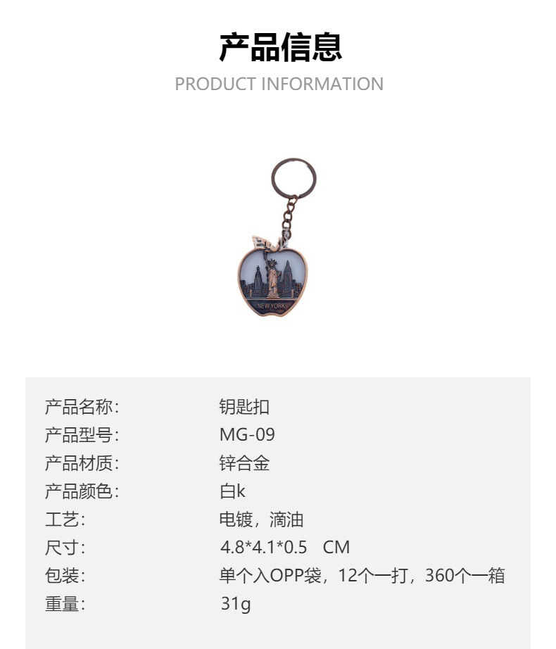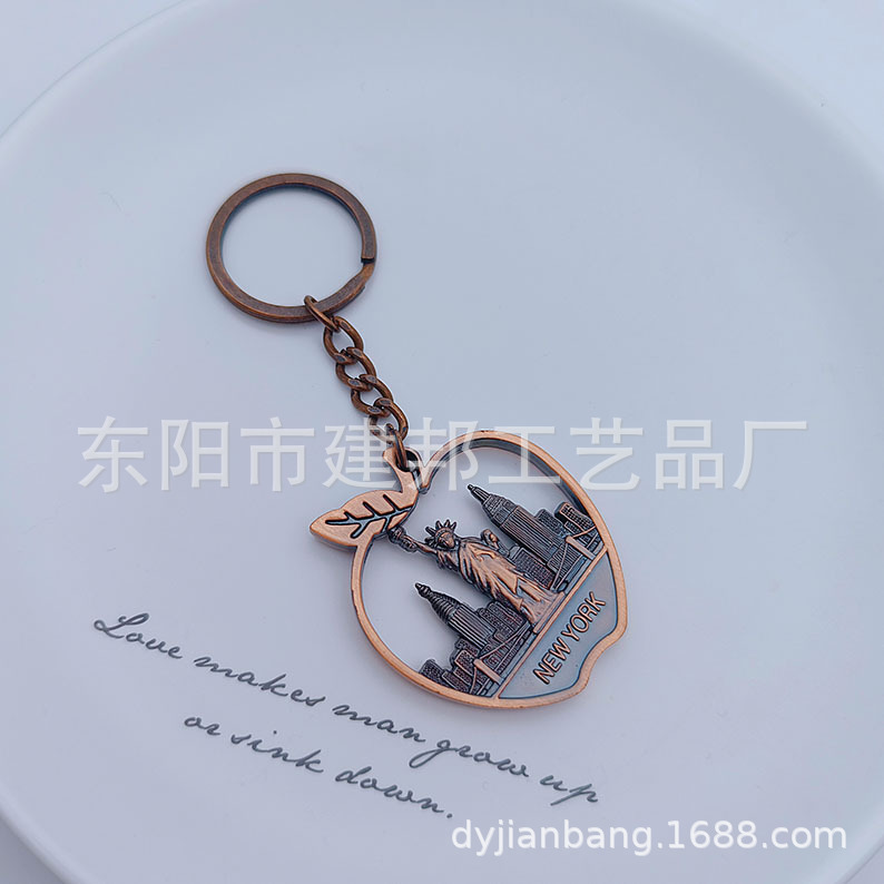 厂家定制个性金属旅游纪念品美国纽约new york 苹果锌合金钥匙扣 投诉