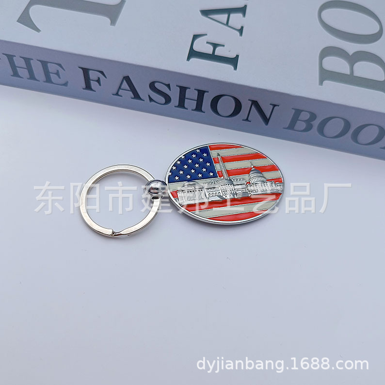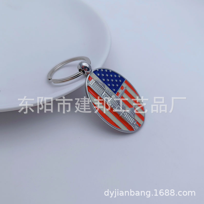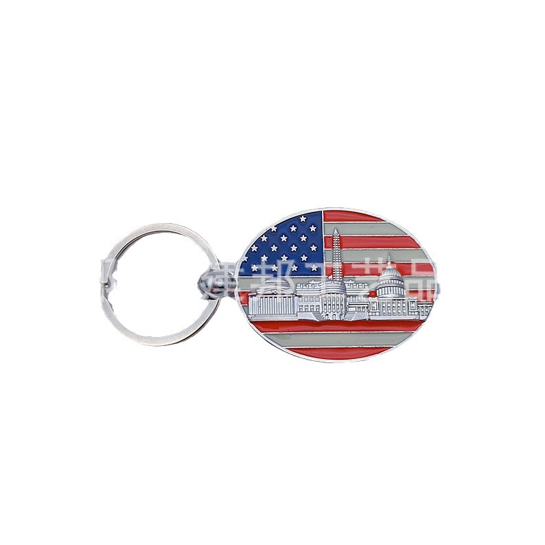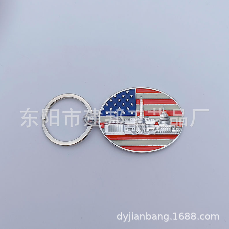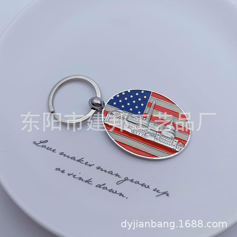厂家定制个性金属旅游纪念品美国华盛顿纽约国旗锌合金钥匙扣