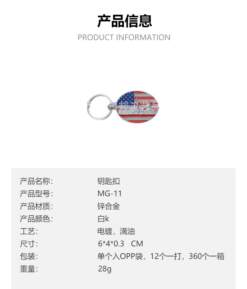厂家定制个性金属旅游纪念品美国华盛顿纽约国旗锌合金钥匙扣 投诉