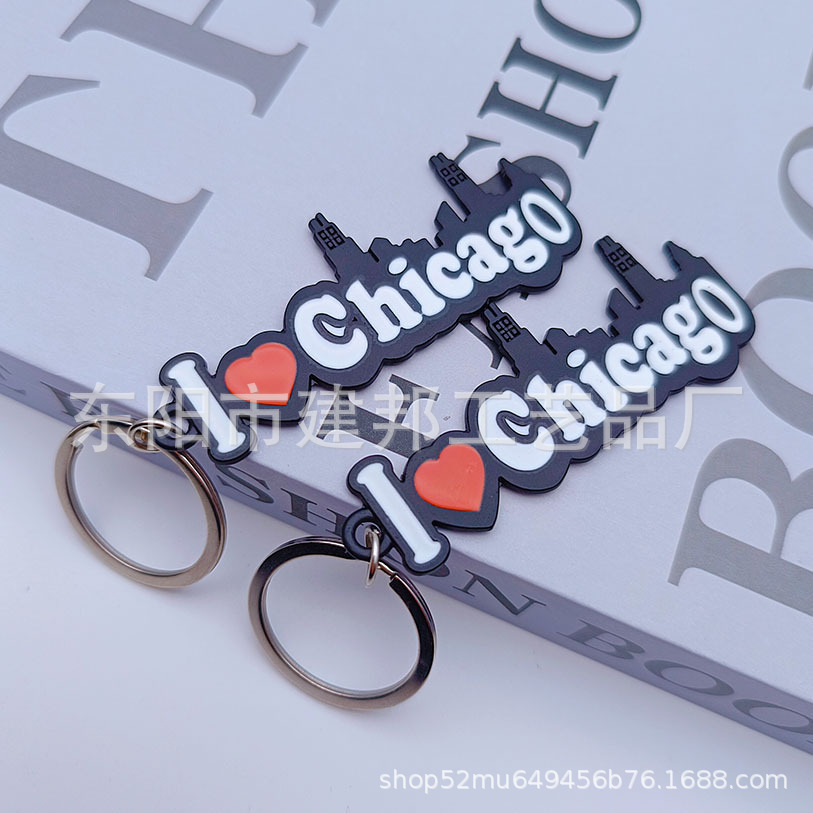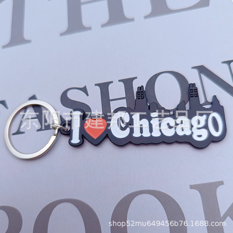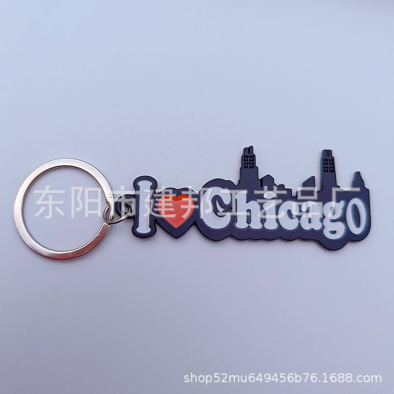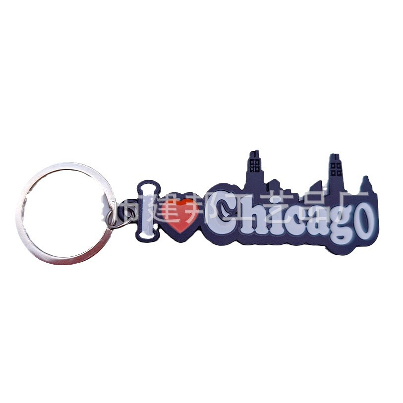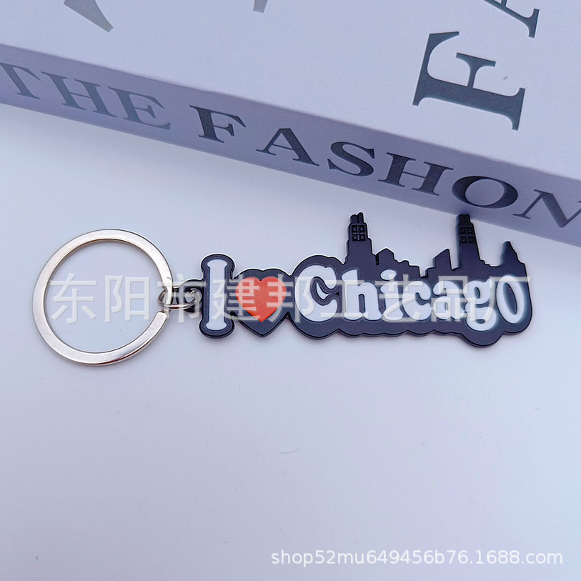 厂家定制创意美国芝加哥CHICAGO旅游纪念品枪黑锌合金钥匙扣
