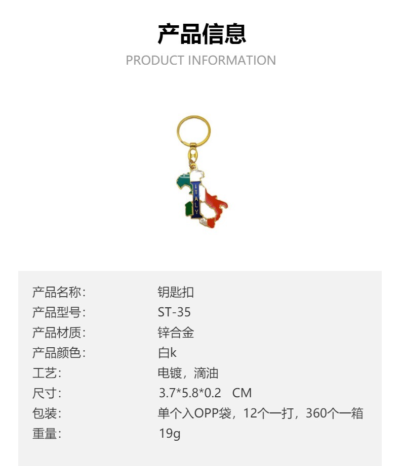 厂家定制个性金属旅游纪念品意大利ITALYY地图挂件锌合金钥匙扣 投诉