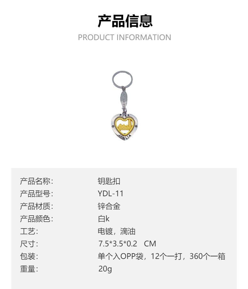 欧洲旅游纪念品意大利威尼斯VENEZIA比萨心形钥匙百搭挂件钥匙扣 投诉