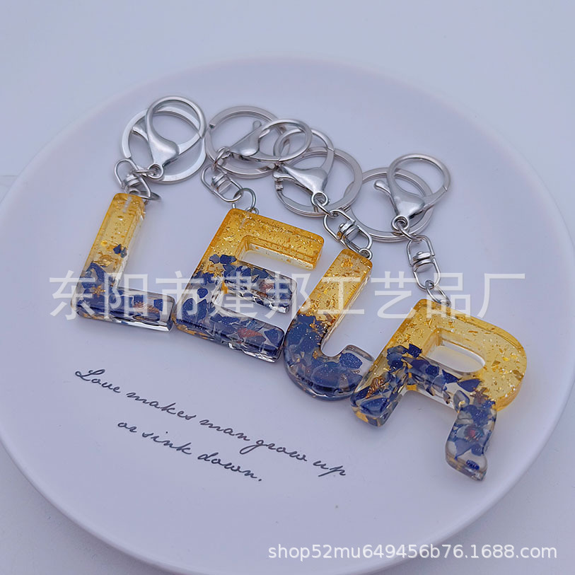 亚克力钥匙扣定做创意可爱立体透明26个字母带亮粉贝壳百搭钥匙扣