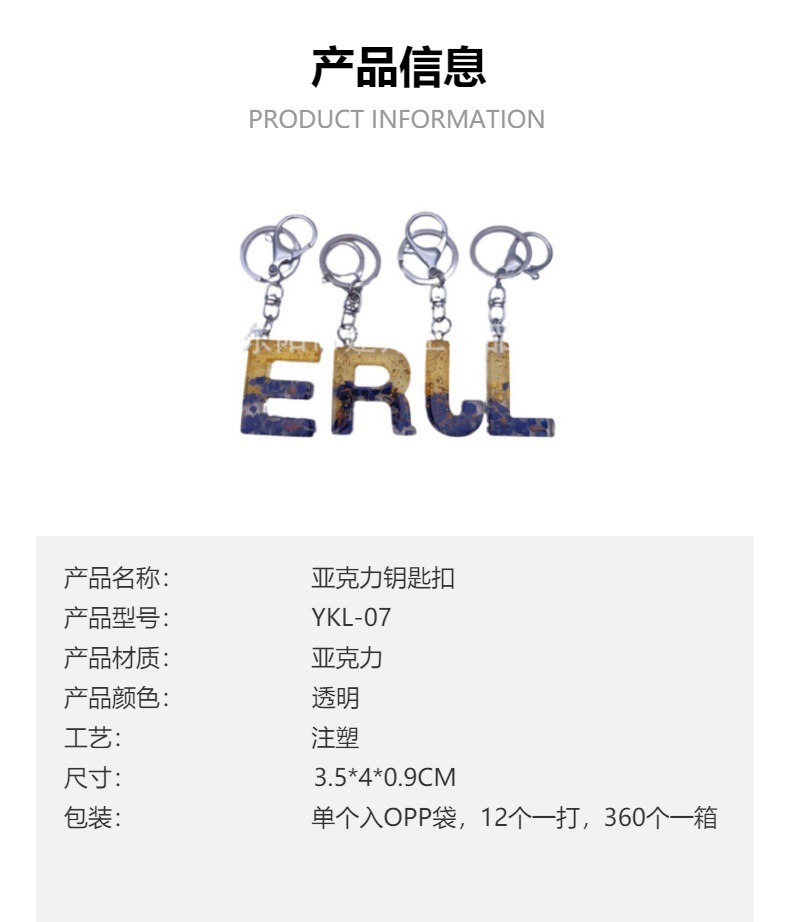 亚克力钥匙扣定做创意可爱立体透明26个字母带亮粉贝壳百搭钥匙扣 投诉