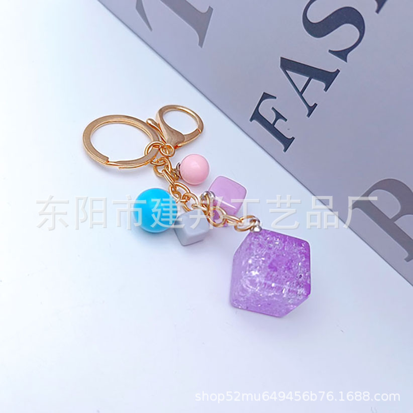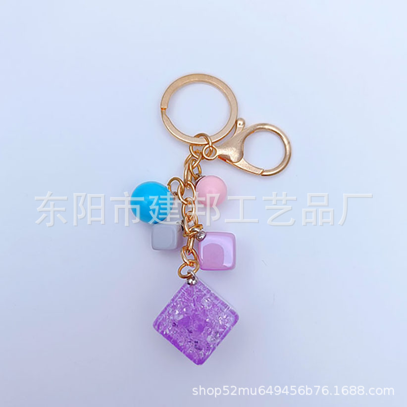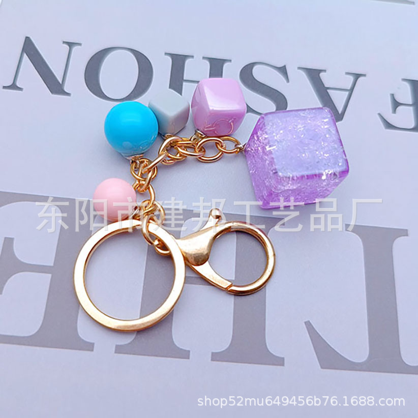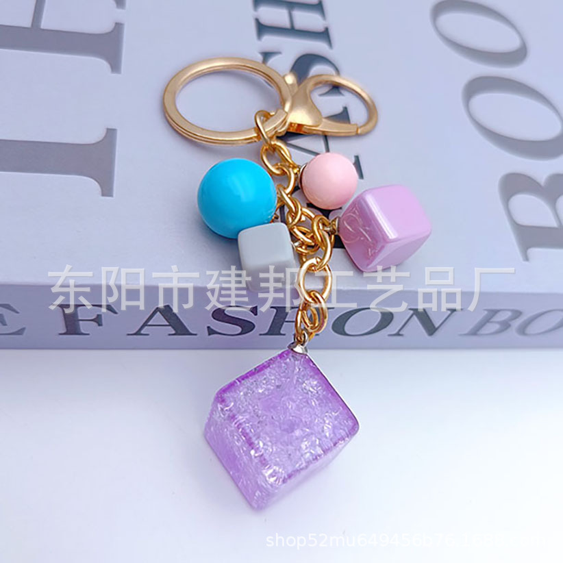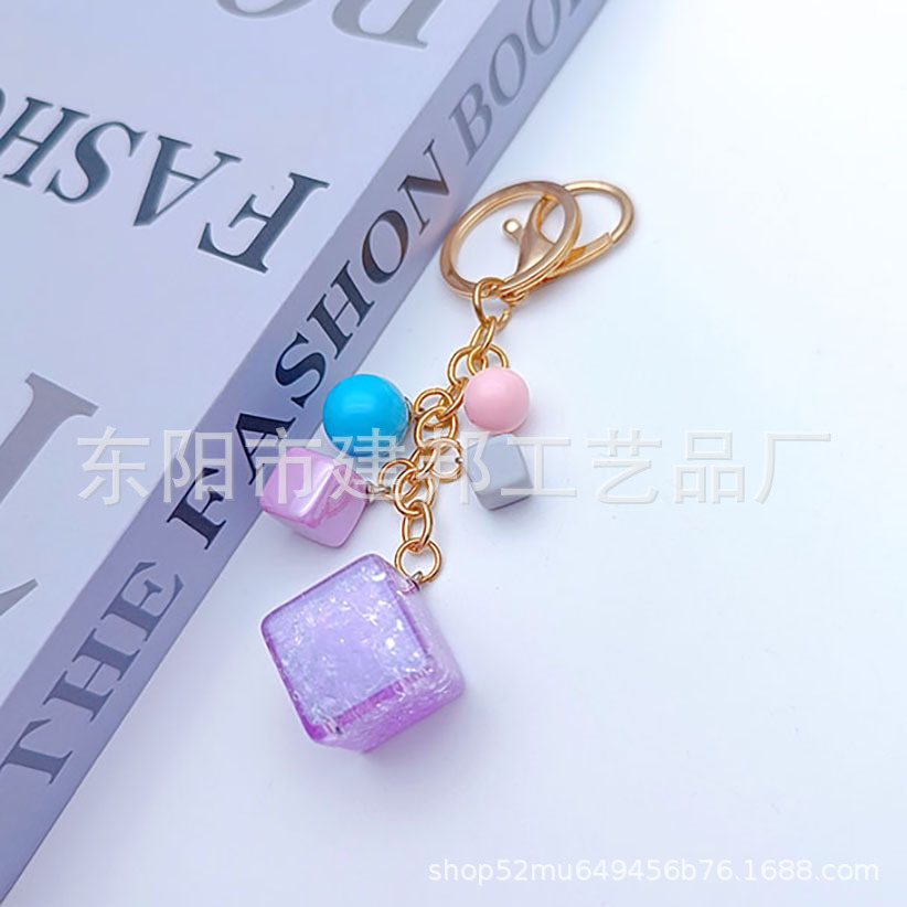 亚克力钥匙扣定做创意可爱立体闪片正方体带小彩球百搭挂件钥匙扣