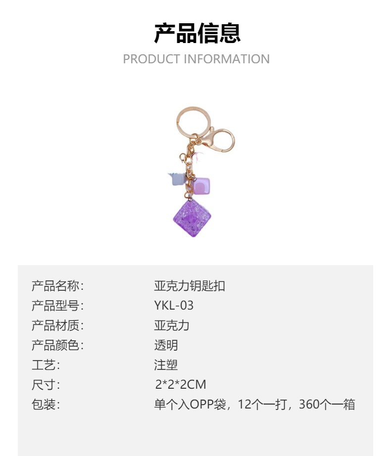 亚克力钥匙扣定做创意可爱立体闪片正方体带小彩球百搭挂件钥匙扣 投诉
