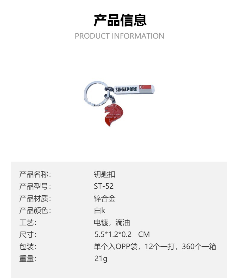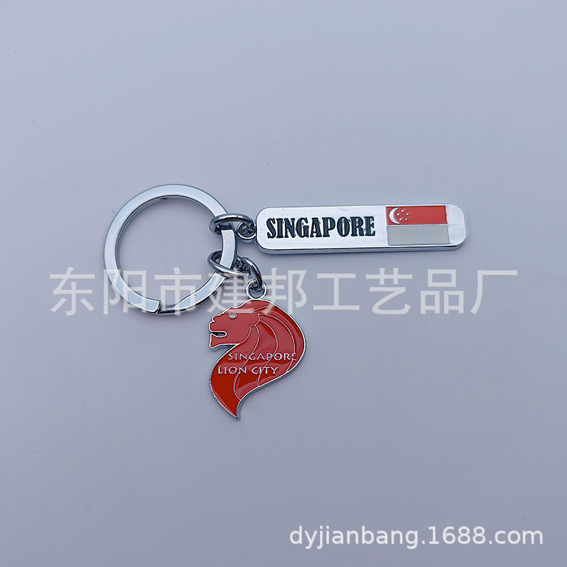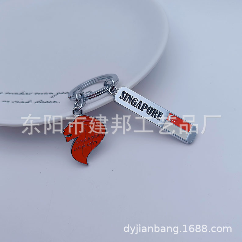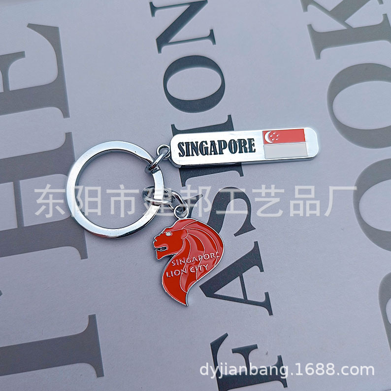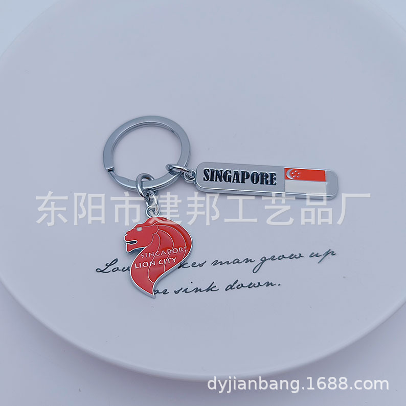 金属钥匙扣旅游纪念品新加坡小吊牌鱼尾狮像赞美广场锌合金钥匙扣