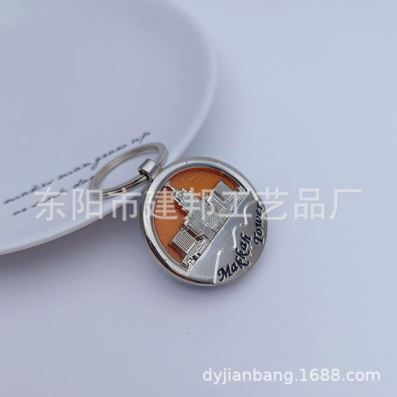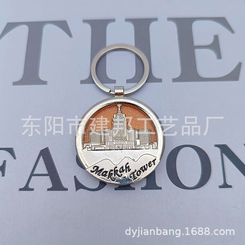 金属钥匙扣旅游纪念品沙特阿拉伯法国亮片亚克力板锌合金钥匙扣