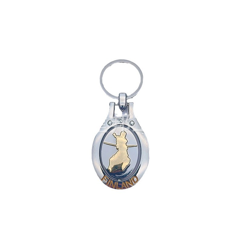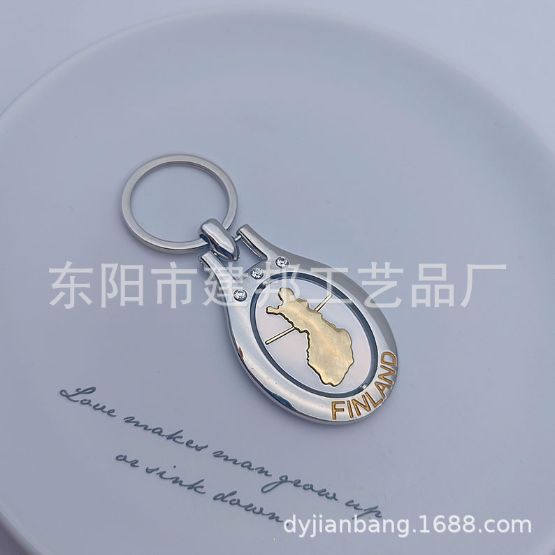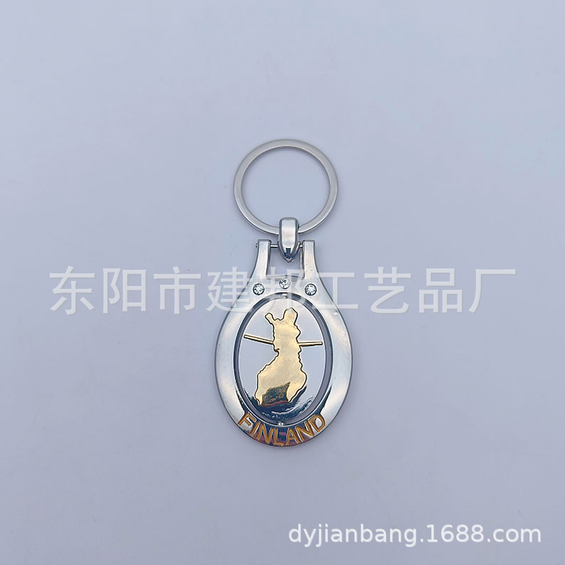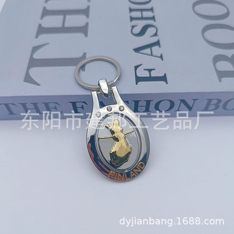 厂家定制个性金属旅游纪念品芬兰FINLAND旋转钥匙扣锌合金钥匙扣