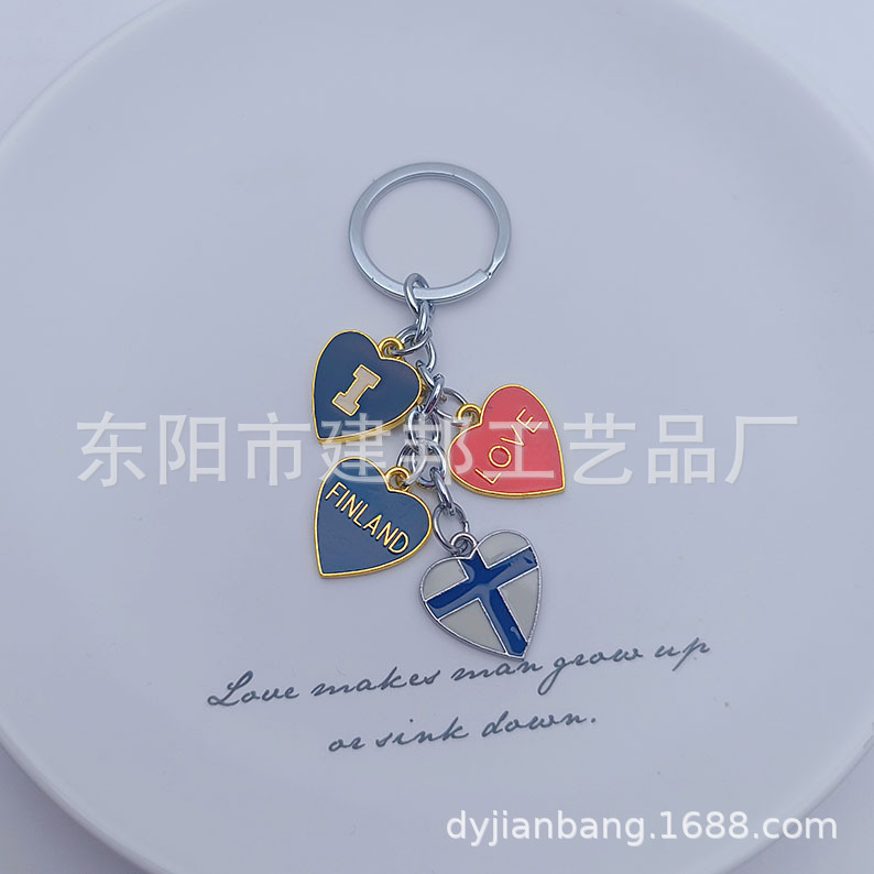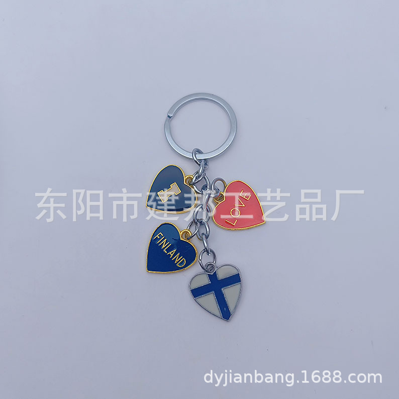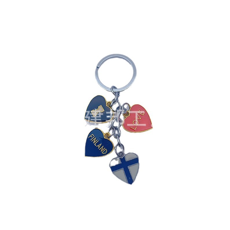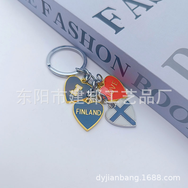 厂家定制个性金属旅游纪念品芬兰FINLAND爱心挂件锌合金钥匙扣