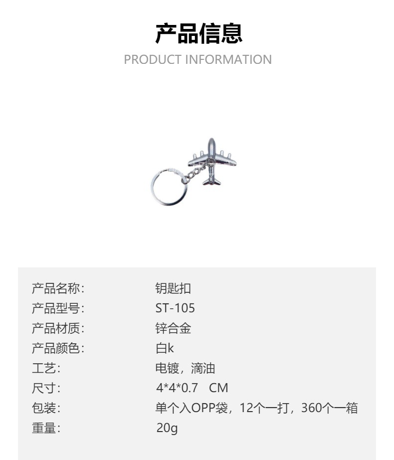 厂家定制个性金属小吊牌挂件旅游纪念立体光面小飞机锌合金钥匙扣 投诉