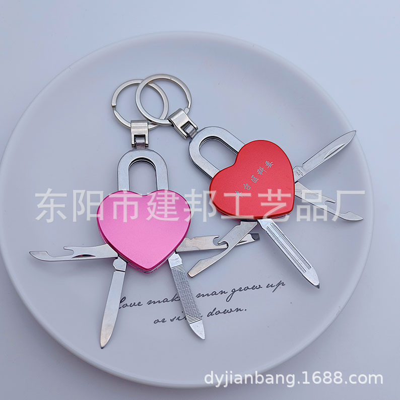 厂家定制个性金属挂件旅游纪念立体多功能桃心小刀锌合金钥匙扣 投诉
