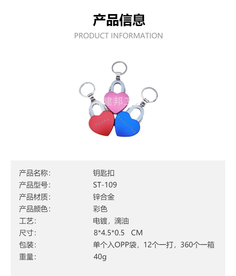 材质: 合金 货号: ST-109 是否进口: 否 合金种类: 锌合金 工艺: 电镀 加工定制: 是 品牌: 建邦 产品编号: ST-109 类别: 钥匙扣 摆挂形式: 挂饰 重量: 0.5 kg/个