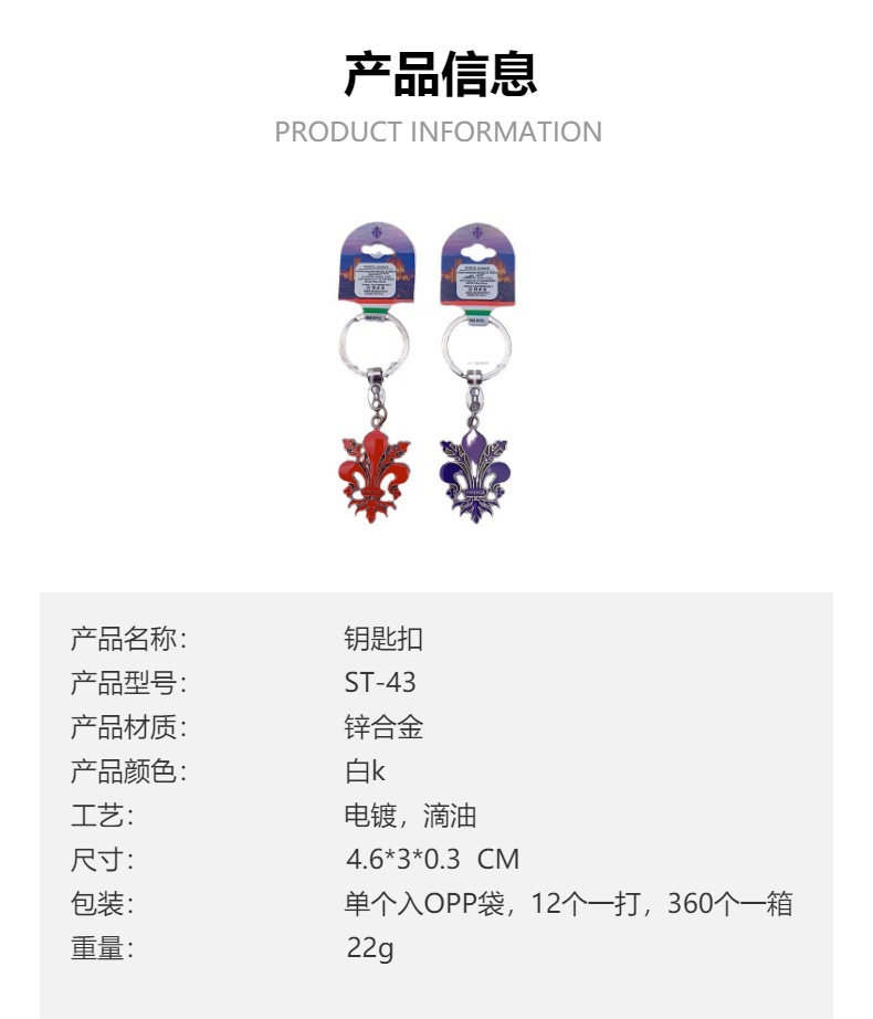 材质: 合金 货号: ST-43 是否进口: 否 合金种类: 锌合金 工艺: 电镀 加工定制: 是 品牌: 建邦 产品编号: ST-43 类别: 钥匙扣 摆挂形式: 挂饰 重量: 0.5 kg/个