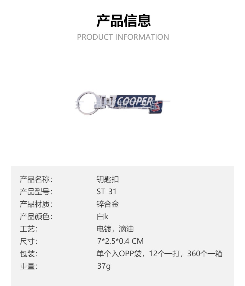 材质: 合金 货号: ST-31 是否进口: 否 合金种类: 锌合金 工艺: 电镀 加工定制: 是 品牌: 建邦 产品编号: ST-31 类别: 钥匙扣 摆挂形式: 挂饰 重量: 0.5 kg/个