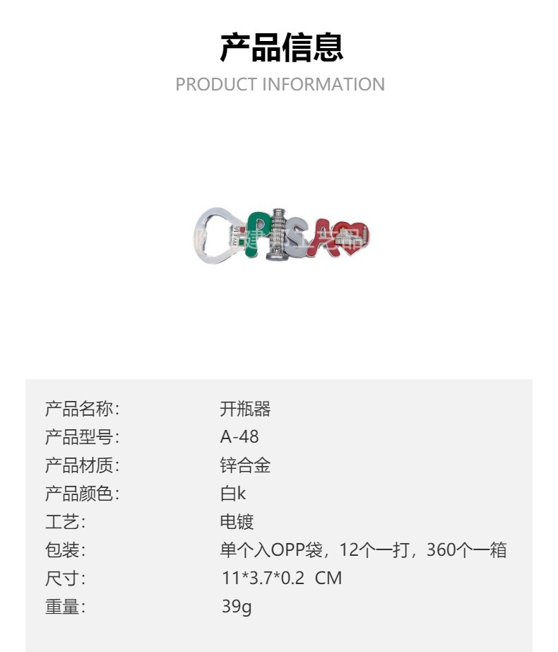 金属旅游纪念品意大利ITALIA威尼斯比萨斜塔PISAD电镀锌合金开瓶 投诉