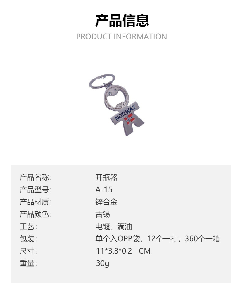 金属开瓶器旅游纪念品NORWAY镍色带钻合金挂件钥匙扣锌合金开瓶器 投诉
