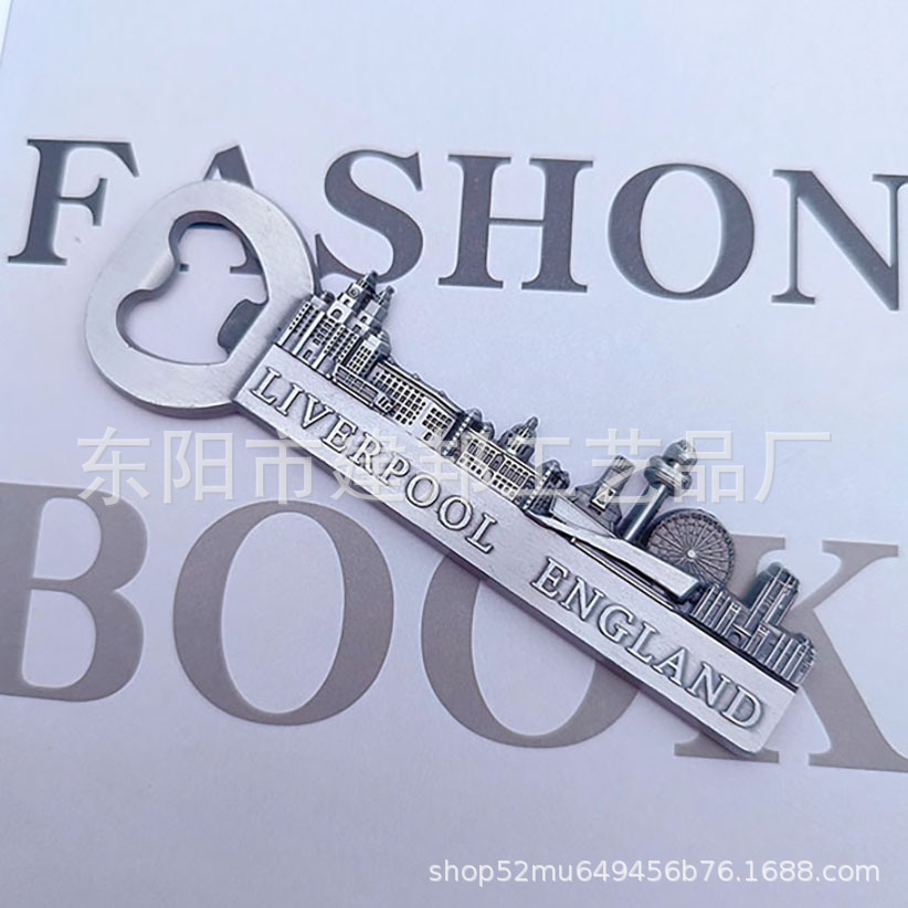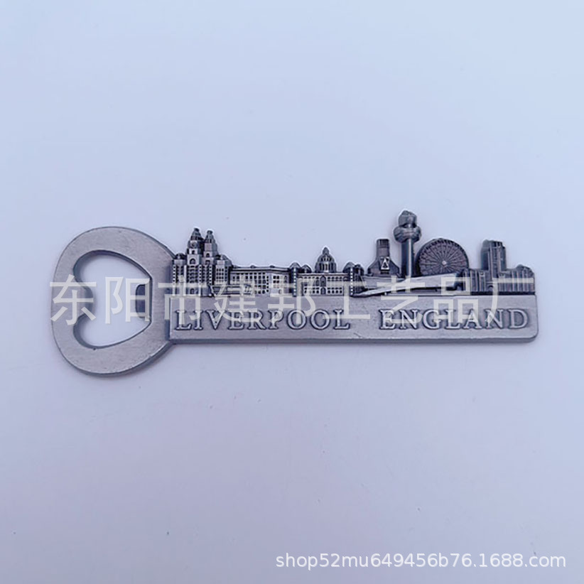 厂家定制旅游纪念品利物浦起瓶器开啤酒带磁贴锌合金开瓶器