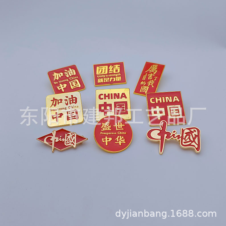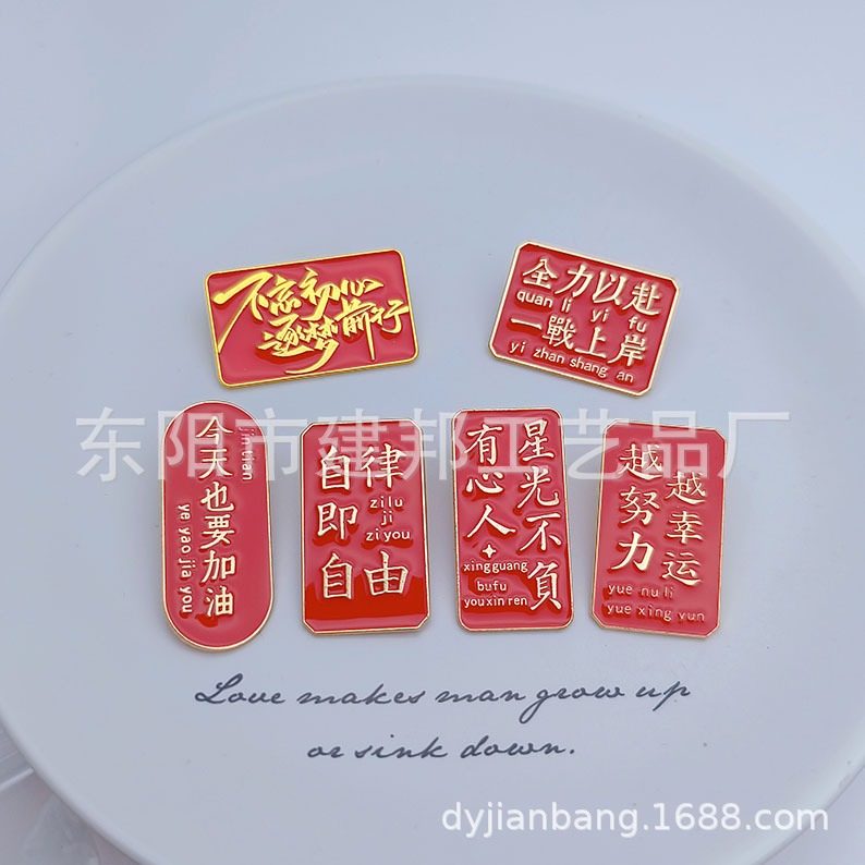 创意中国红合金滴油仿珐琅胸章金属徽章前程似锦未来可期胸针 投诉
