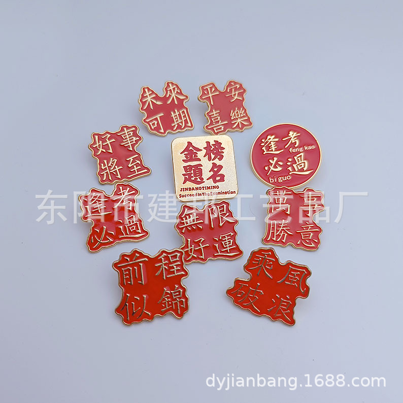 创意中国红合金滴油仿珐琅胸章金属徽章前程似锦未来可期胸针