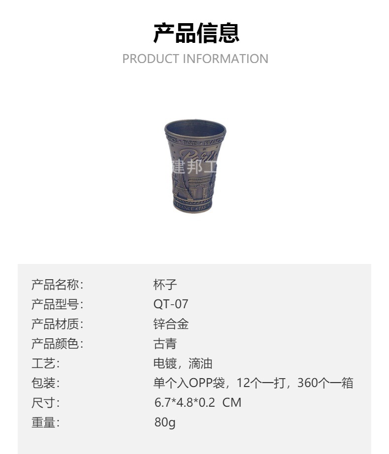欧洲旅游纪念品法国巴黎埃菲尔铁塔金属杯锌合金杯子烈酒杯 投诉