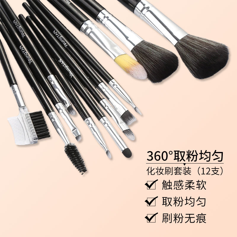 厂家直供12支装化妆刷套装初学者黑色粉底修容眼影腮红刷美妆工具