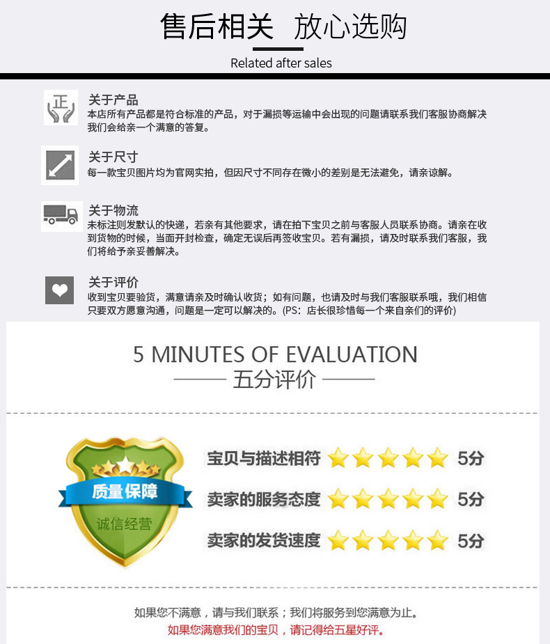 • 世界因你而美丽,我店因你而繁荣,你因我店更成功,坚守三大信念:双赢、诚信、效率、三心服务:诚心、耐心、放心、工作中不足,望您谅解;产生问题、尽快解决;诚信第一!营业时间:周一至周日8:30-5:00