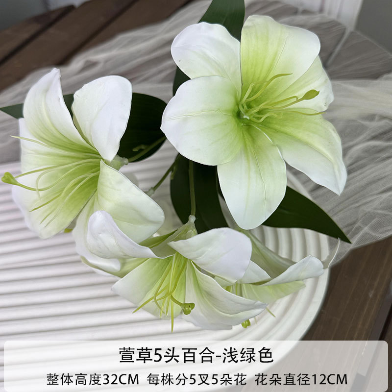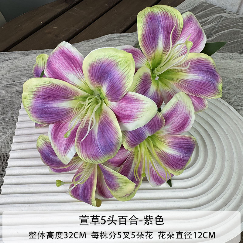仿真5头百合仿真花3d立体家居茶几装饰花婚庆婚礼拍摄道具花定制