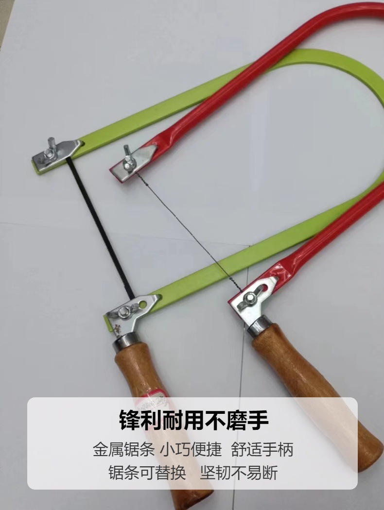 家用U型拉花线锯钢丝式锯条木工拉花金属切割小型锯子木柄雕花锯