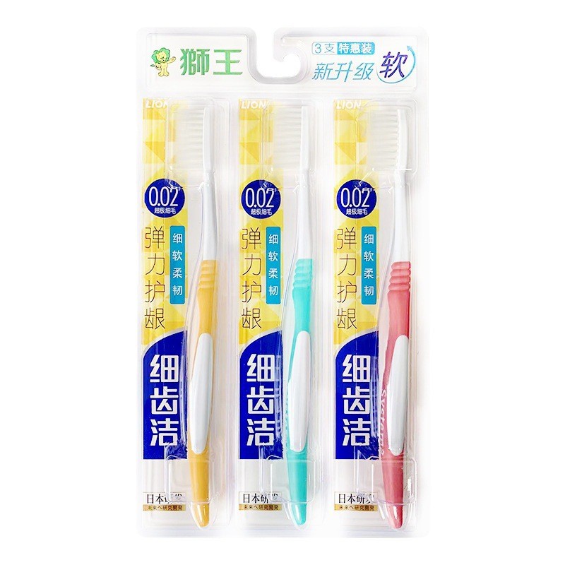 LION狮王细齿洁弹力护龈牙刷清洁口腔软毛牙刷3支装批发